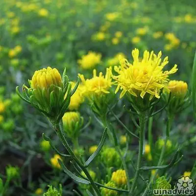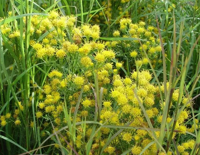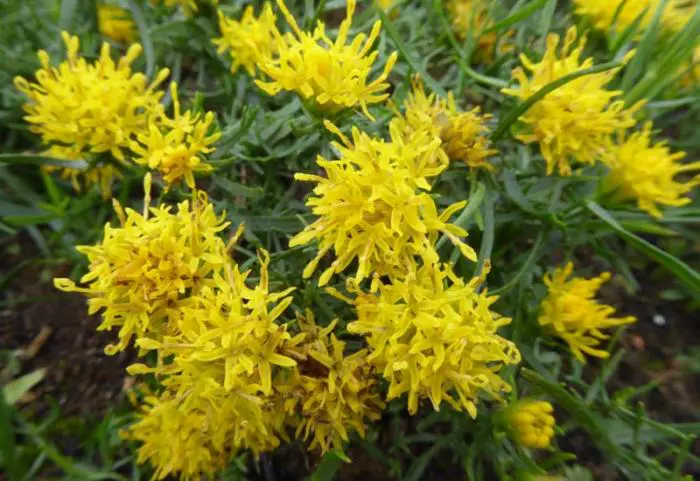 Aster linosyris is een aster dat erg verschillend is van de andere asters door hun samengestelde bloemhoofdjes die op pomponnetjes lijken (ø 12-18mm). De bloemen zijn helder groengeel.