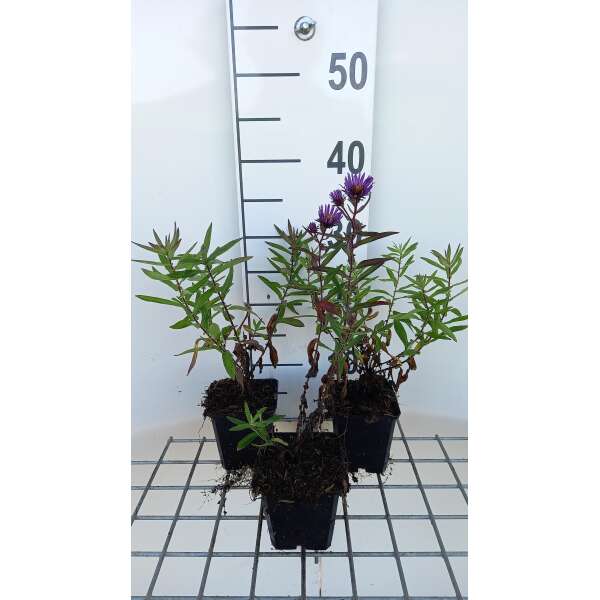 Aster novae-angliae 'Barr's Blue' is een krachtige, rechtopstaande vaste plant met slanke, vertakte stengels en smal lancetvormig, donkergroen blad.