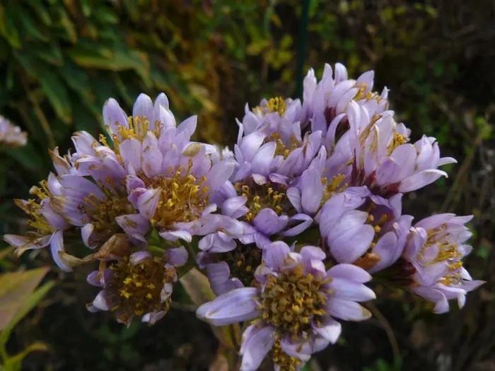 Een heel speciale .... rozelila bloemblaadjes met en groot geel hart en dikke gele meeldraden