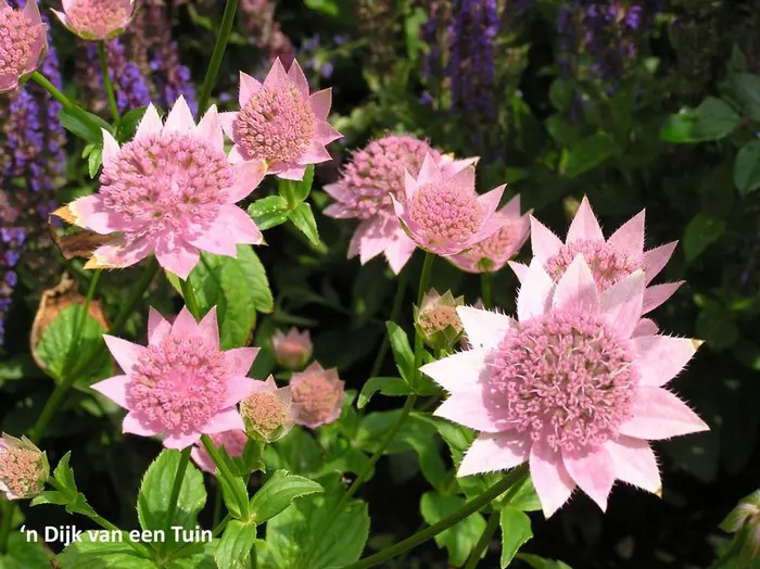 Astrantia maxima onderscheidt zich van andere variëteiten door de grootte van de bloemen die tot 5 cm in diameter meten. De bloemen en schutbladen zijn helder snoepjesroze.