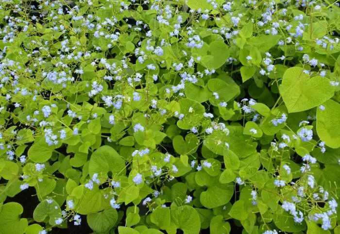 Plant de Brunnera in koele, rijke, humusrijke, goed doorlatende grond.