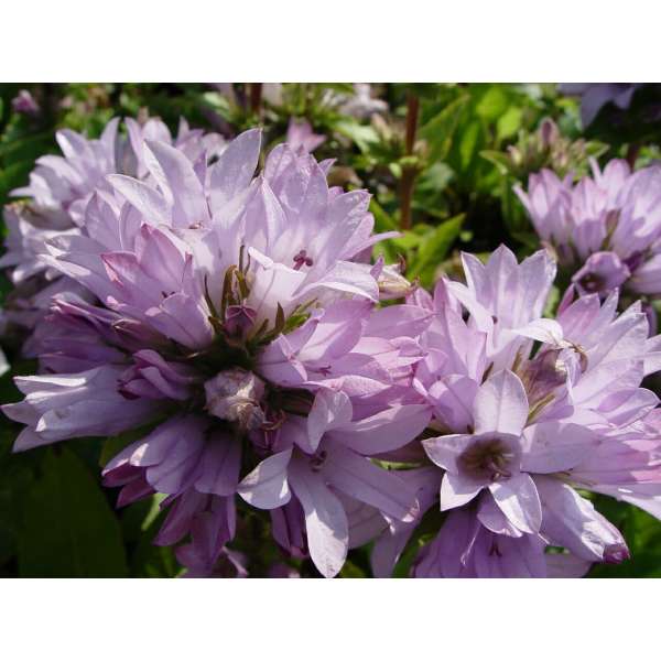 Campanula glomerata 'Caroline' heeft een iets andere bloem dan de meeste Campanula's, het zijn meer trossen klokjes met lichtroze buisvormige klokbloemen, rozer aan de tippen.