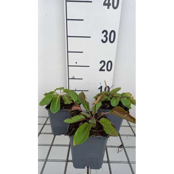 Het is een bossige wortelstokachtige vaste plant met rechtopstaande stijve, violetbruine stengels en ovale tot lancetvormige groene bladeren.