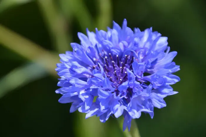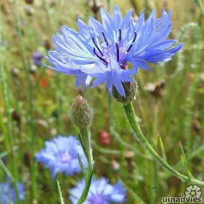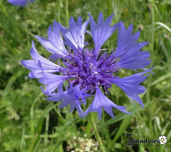 De wilde korenbloem is een éénjarige met diepblauwe bloemen, bloeit maandenlang als je de uitgebloeide bloemen verwijdert.