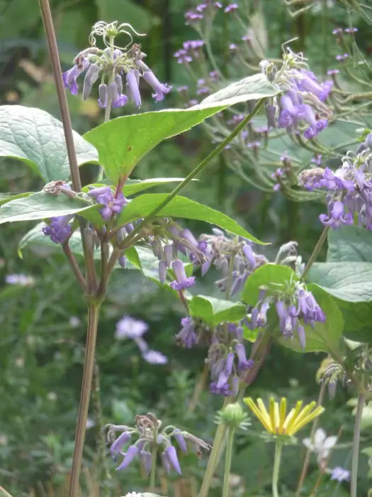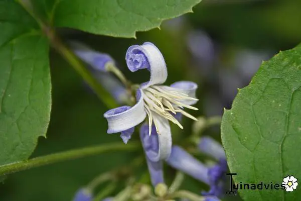 Clematis heracleifolia 'Cote d'Azur' is een niet-klimmende, rechtopstaande clematis met een vrij brede bossige groei en trossen van licht geurige, buisvormige bloemen.