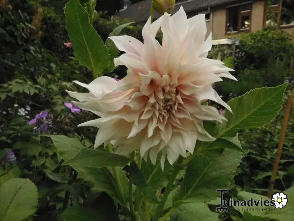 Dahlia 'Café au Lait' is een decoratieve dahlia met goed gevulde, zeer grote bloemen en brede platte bloemblaadjes. De bloem is bij het opengaan zachtroze, verkleurend naar een romige koffiekleur.