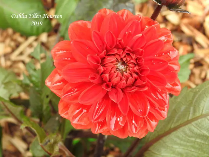 Dahlia ‘Ellen Houston’ is een decoratieve dahlia met gevulde bloemen en brede platte bloemblaadjes.