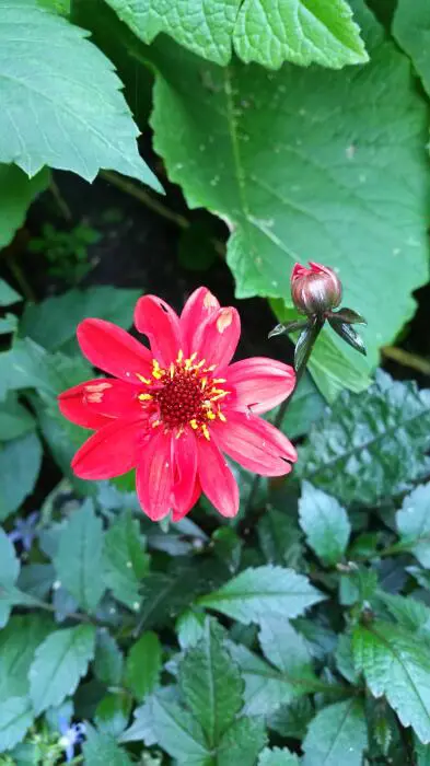 Ze bloeien met donkerrode bloemen rond een zwart hart. Contrasteren mooi met het donker purper (bijna zwart) gebladerte.