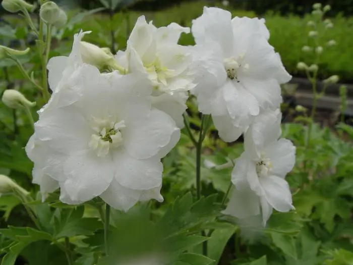 Delphinium 'Delphi Diamant' is een prachtige hoge ridderspoor van 150cm ,enkelbloemig, wit met groen hart