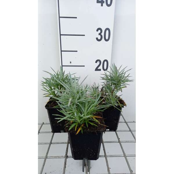 Dianthus 'Maggie' is een laag half kruipend/opgaand plantje met sprietachtige blauwgroene blaadjes.