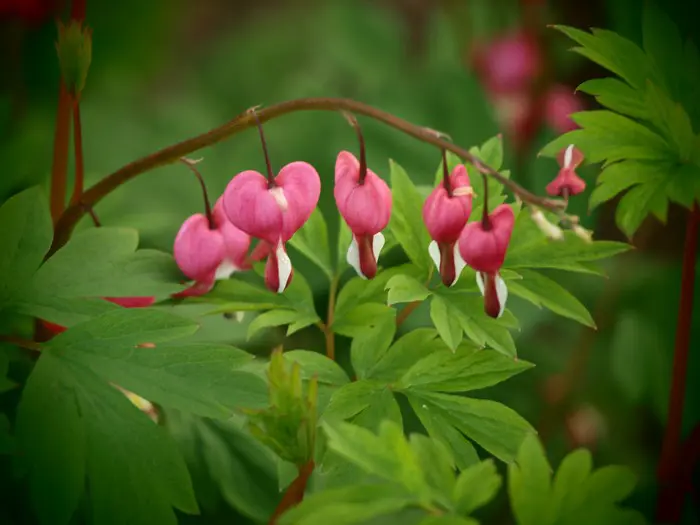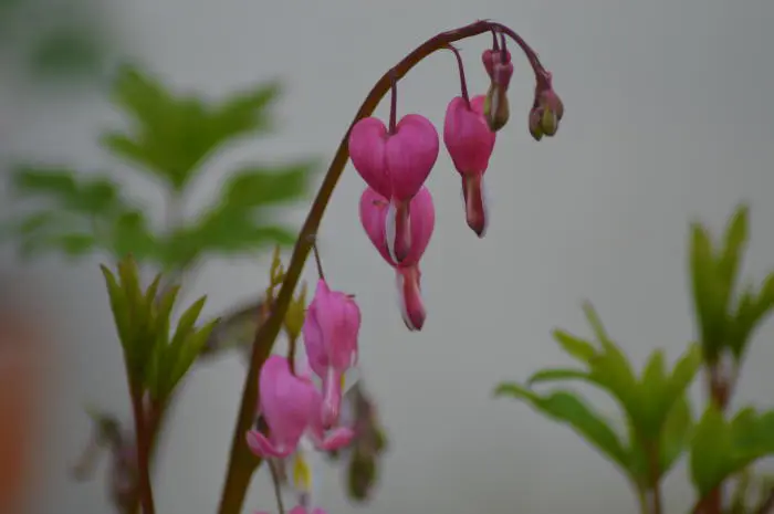 Heeft een samengesteld groen blad met aparte bloemen die aan een hartje doen denken, deze zijn aan de buitenkant zachtroze en wit aan de binnenkant.