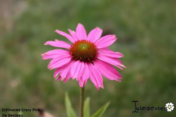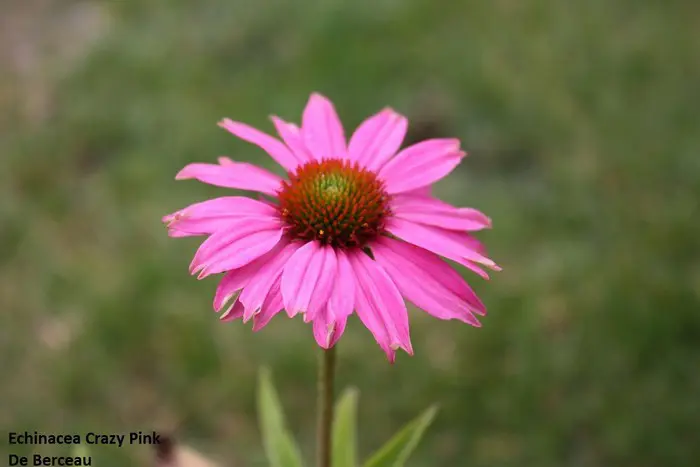 Echinacea purpurea 'Crazy Pink' heeft sierlijke, hangende felroze bloembladen rond een grote oranje kegel.