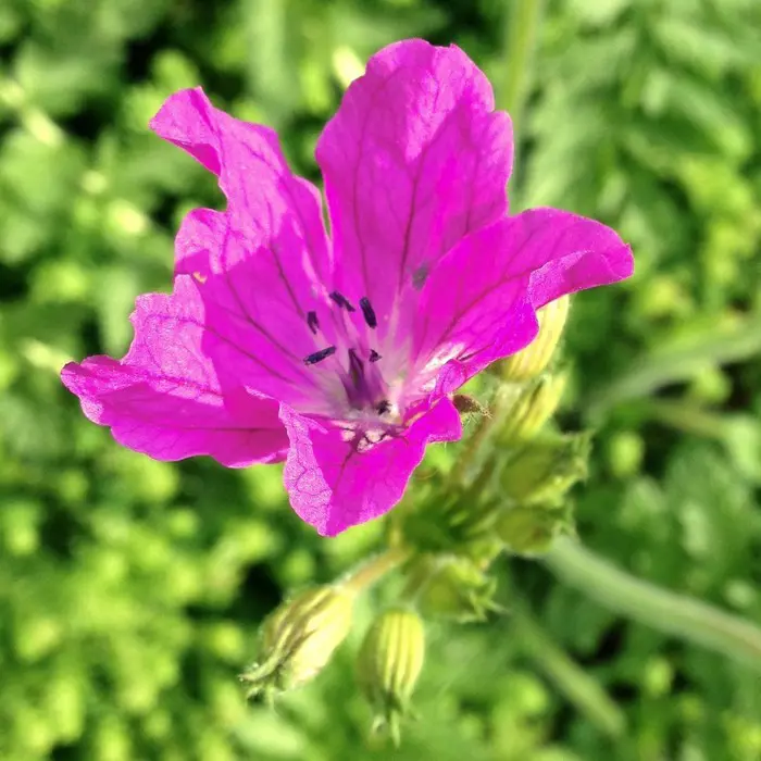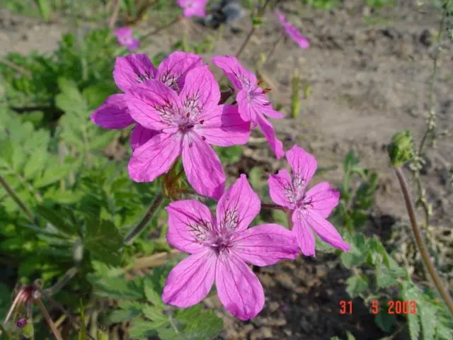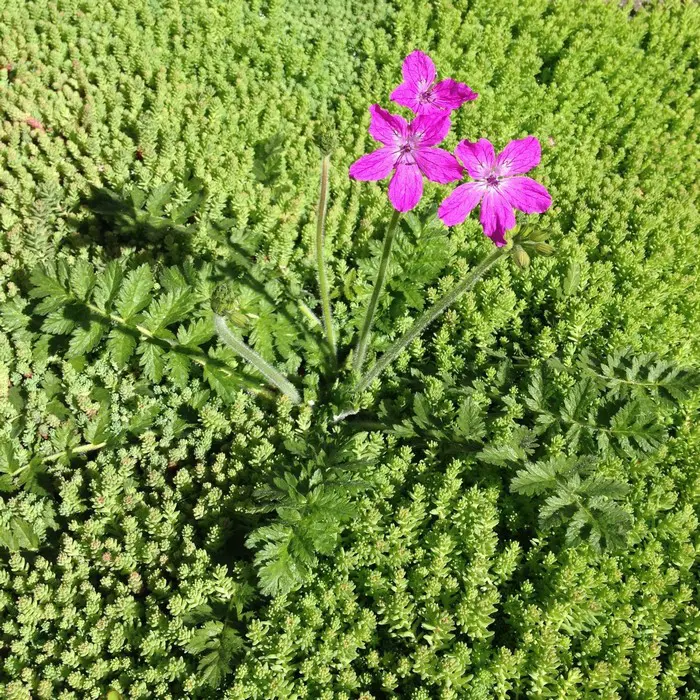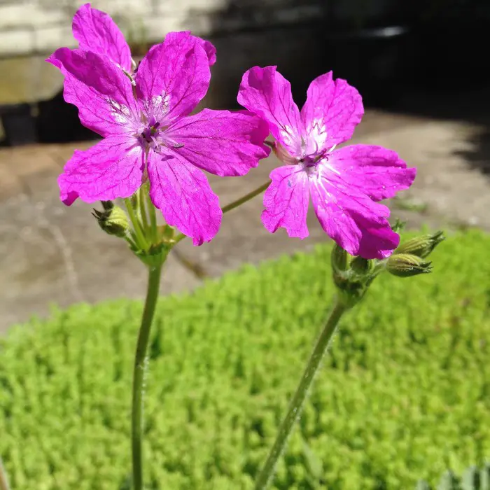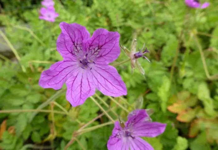 Erodium manescavii heeft purperroze bloemen en wordt 40cm hoog.