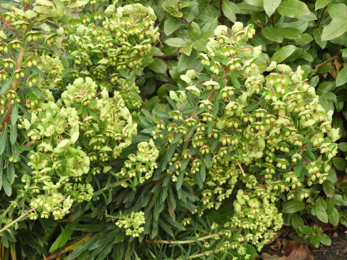 Euphorbia 'Blackbird' is een vaste plant met een compacte bolvorm.