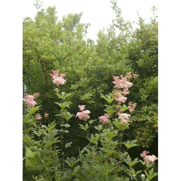 Filipendula purpurea 'Elegans' oorspronkelijk uit Japan, is een rizomateuze rechtopgaande, bossige plant met grote geveerde, ronde, donkergroene bladeren.