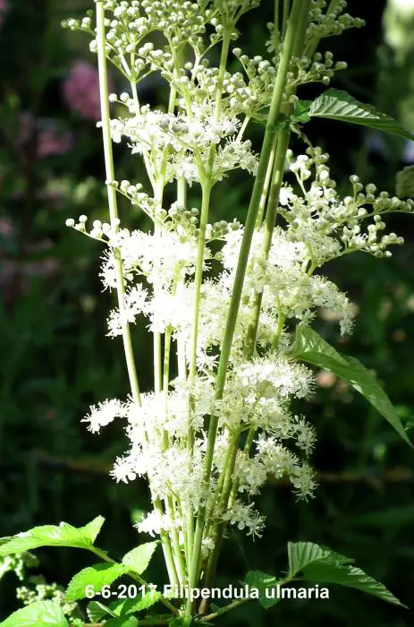 Filipendula ulmaria is een rizomateuze plant met vertakte stengels, en grote oneven geveerde, glanzende groene bladeren.