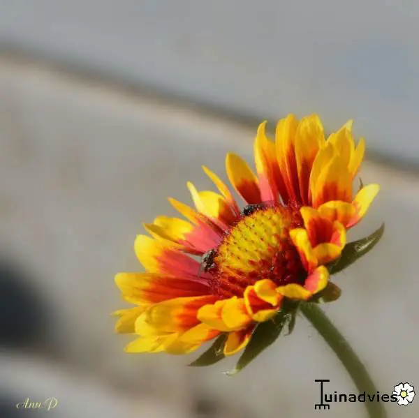 Gaillardia aristata is een kortlevende vast plant met margrietachtige roodoranje bloem (composiet) met geel aan de toppen rond een geel/rood hart.