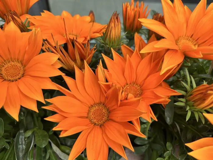 Gazania rigens 'Giant Deep Orange' is een langbloeiende éénjarige plant met zeer grote oranje bloemen.