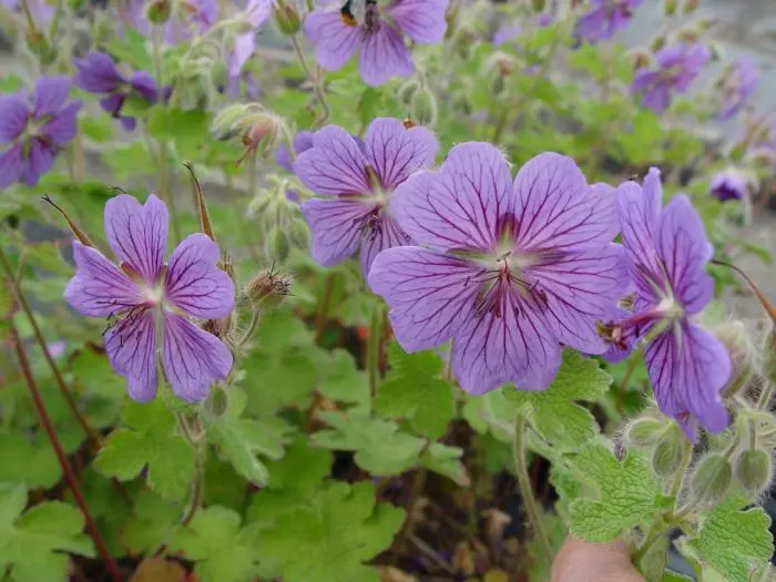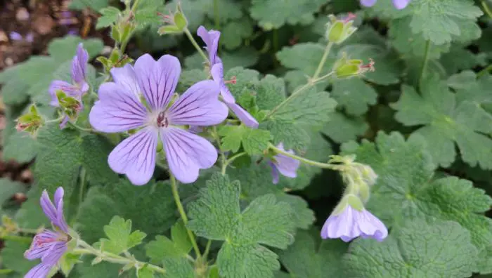 Geranium 'Terre Franche' is een kruising tussen G. renardii x G. platypetalum.