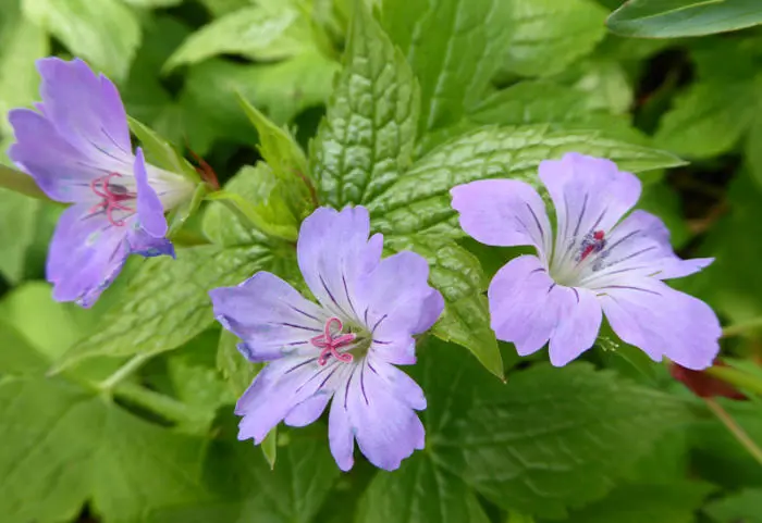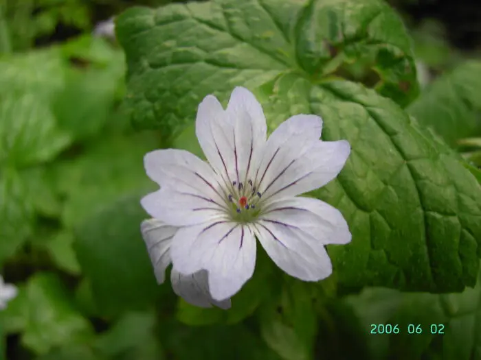 Geranium magnificum is een soort met een bossige groeiwijze en grote donker geaderde, violetblauwe bloemen met een wit hartje.