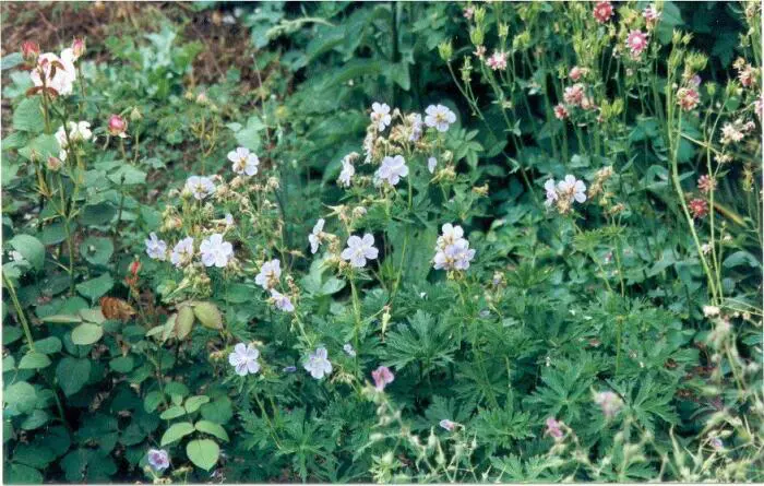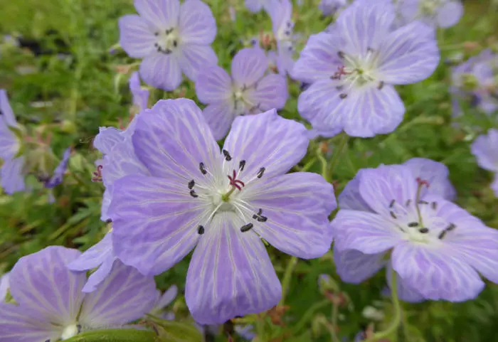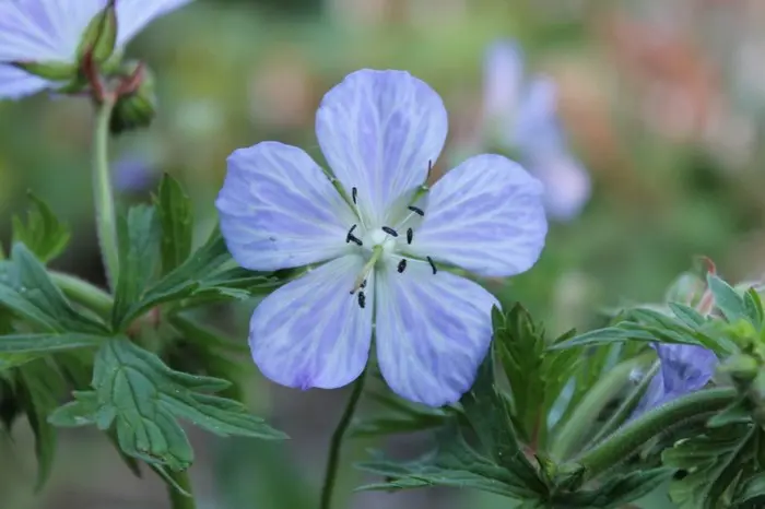 Geranium pratense 'Mrs Kendall Clark' is één van de mooiste Geraniums met een compacte groeiwijze met diep ingesneden bladeren.