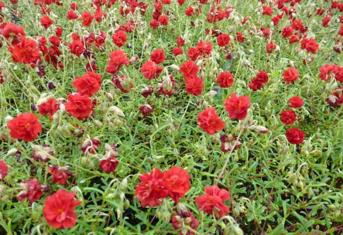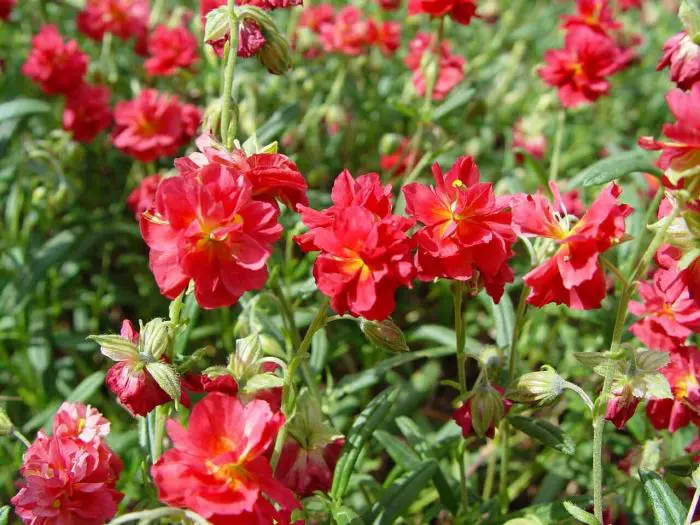 Helianthemum 'Amabile Plenum' is een halfheestertje met dubbele oranjerode bloemen.