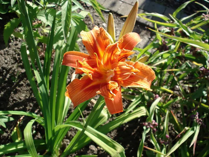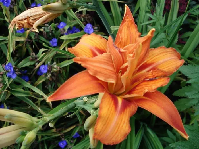 Hemerocallis 'Kwanso' is een krachtige cultivar met dubbelbloemige bloei in verschillende tinten oranje.