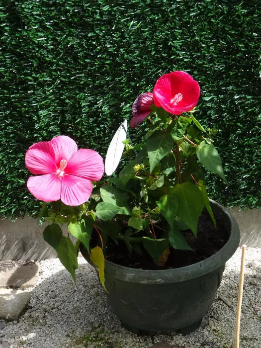 Hibiscus moscheutos 'EXTREME' is een serie van laagblijvende compacte Althaeastruiken. Het is één van de beste voor in pot te houden.