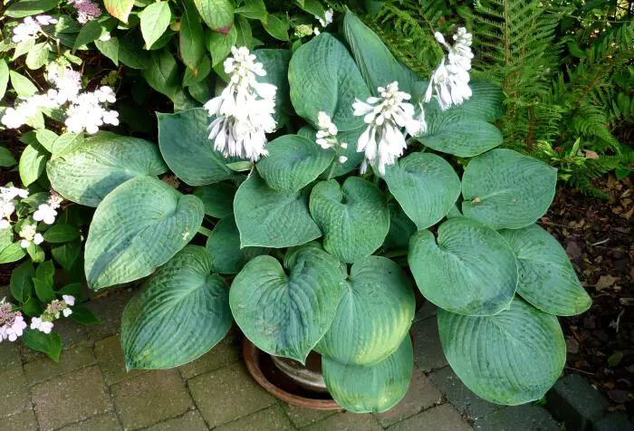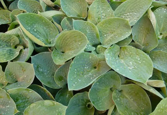 Hosta 'Big Daddy' is een mooie sieboldiana-cultivar met ronde komvormige bladeren, gebobbeld met een blauwe kleur.