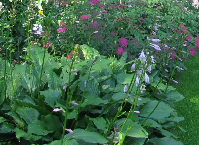 Hosta 'Honeybells' heeft lichtgroene smalle, golvende bladeren.