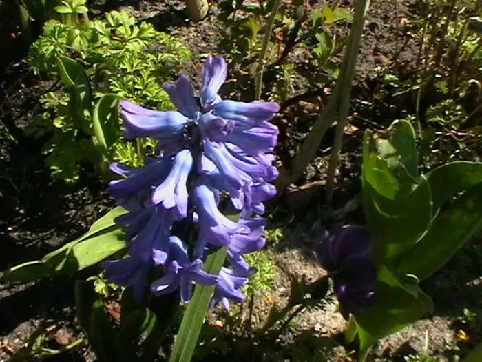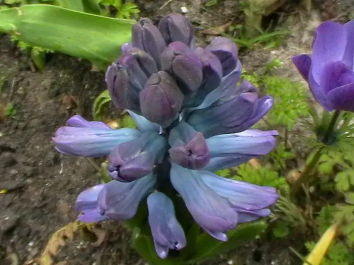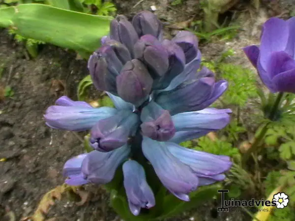 Hyacinthus orientalis 'Delft Blue' bloeien met geurende delftblauwe bloemen.