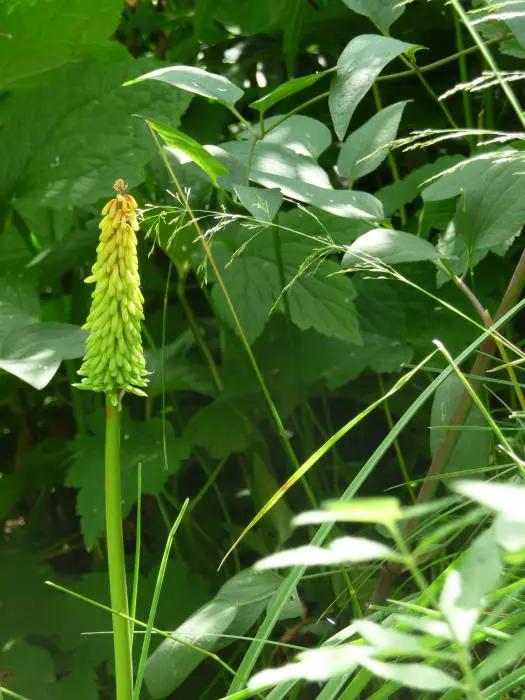 Kniphofia 'Moonstone' bloeit volledig roomgeel.