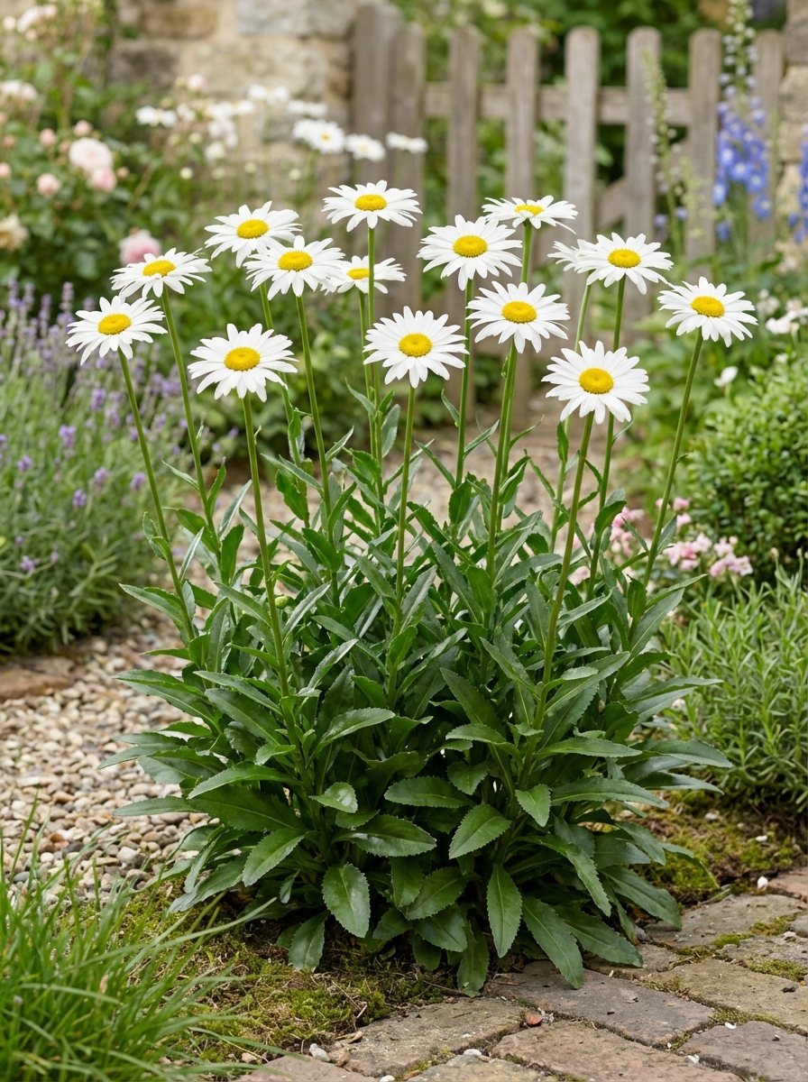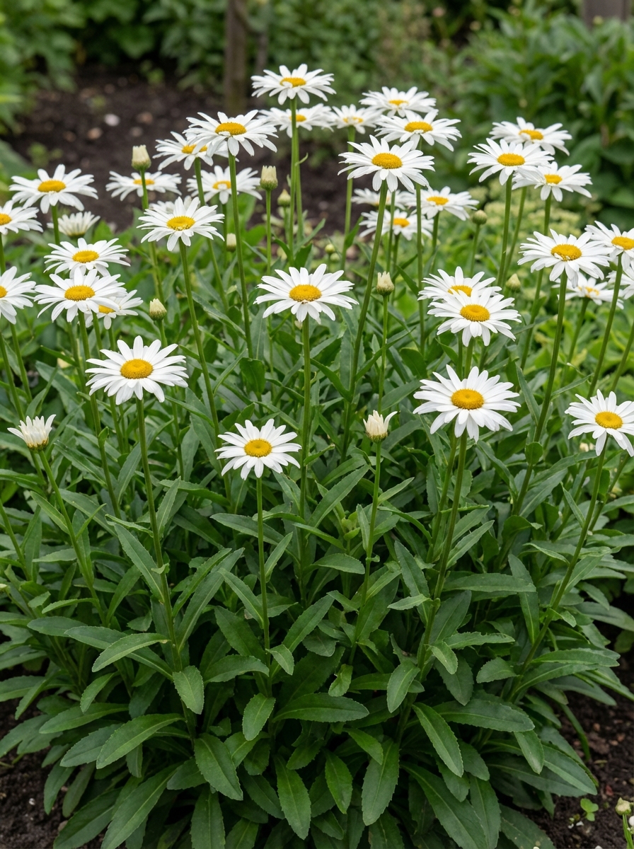 Leucanthemum x superbum 'Becky' is een grote, krachtige en stevige margriet met grote witte bloemen en een goudgeel hart.