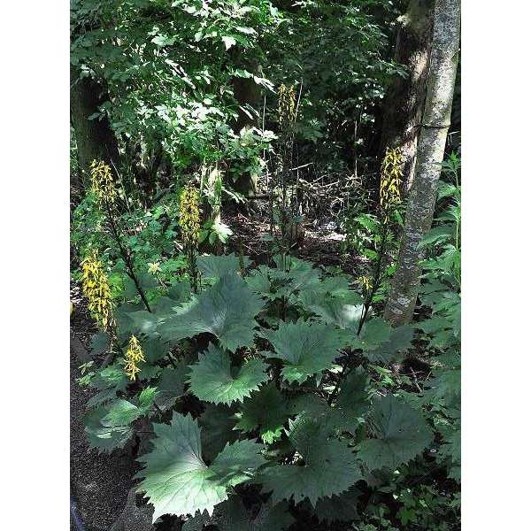 Ligularia stenocephala 'The Rocket' is een vaste plant met aantrekkelijke grote, getande groene bladeren.