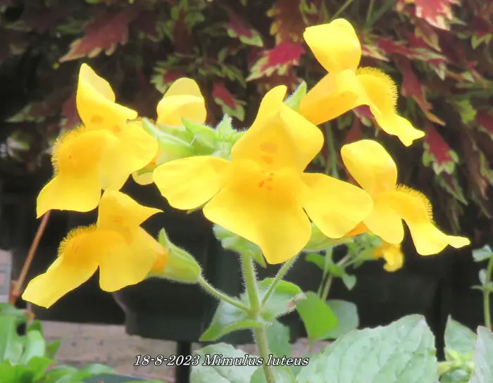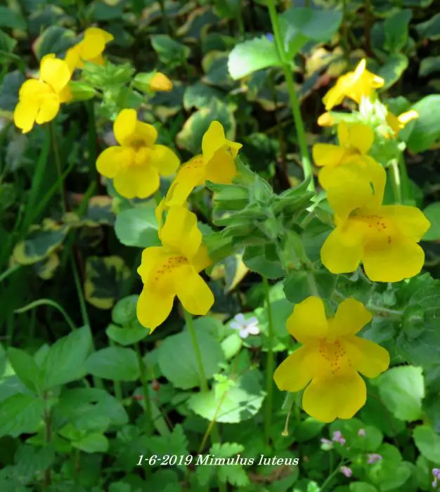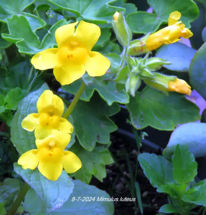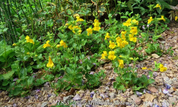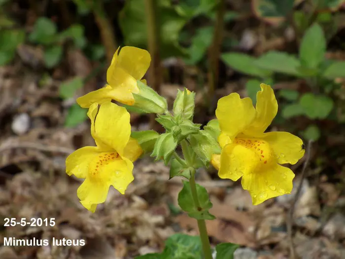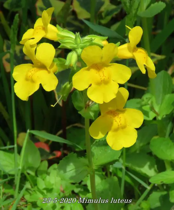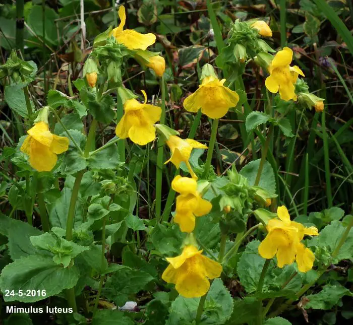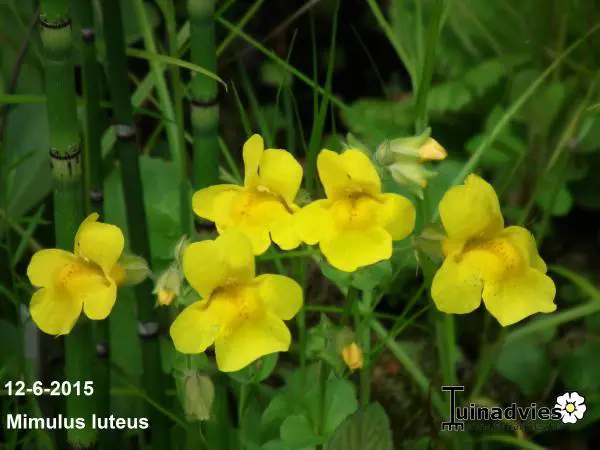 Mimulus luteus is een moerasplant en houdt van een goed vochtige bodem zoals aan de rand van de vijver in een tamelijk voedselrijke bodem.