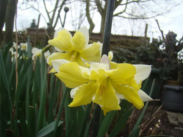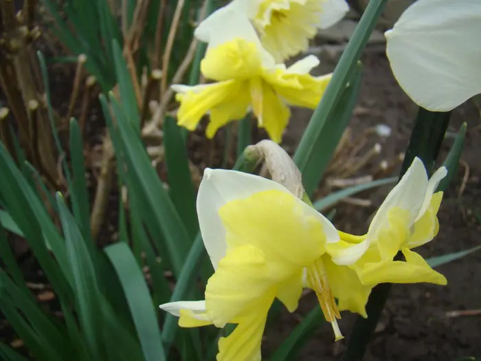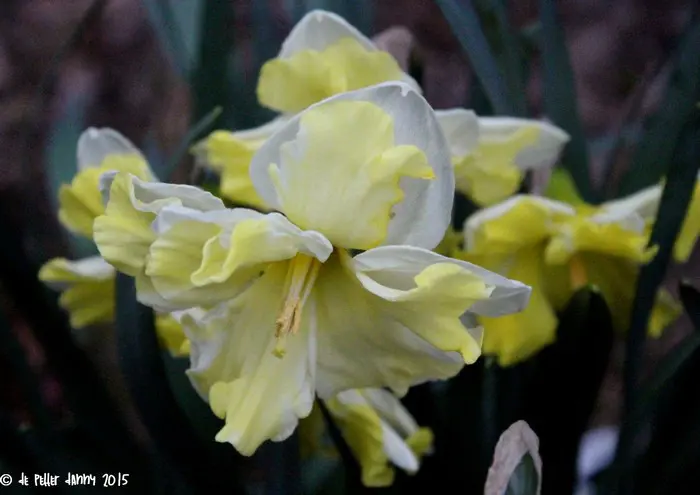 Narcissus 'Cassata' is een Spleetkronige narcis bloeit met grote roomgele bloemen met een gespleten gele trompet.