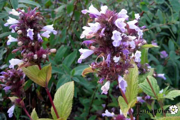 Nepeta subsessilis verkiest in tegenstelling tot de andere Nepeta's een vrij vochtige grond zo niet wordt het blad geel.
