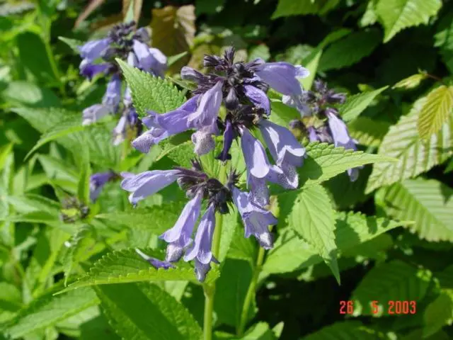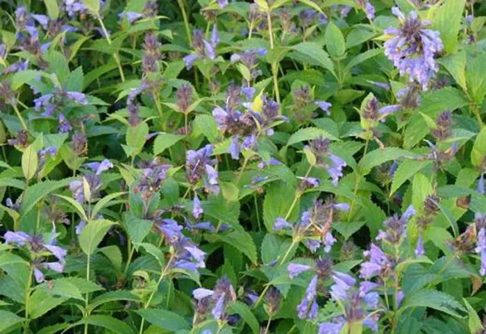 Nepeta subsessilis is een bossige rechtopgaande struik met mooie donkergroene bladeren maar ruiken onprettig bij aanraking.