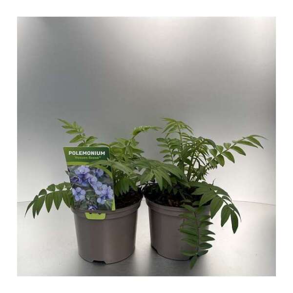 Polemonium yezoense 'Heaven Scent' heeft opvallend mooie, diep ingesneden bladeren, getint met chocoladepaars in de lente, groener in de zomer.