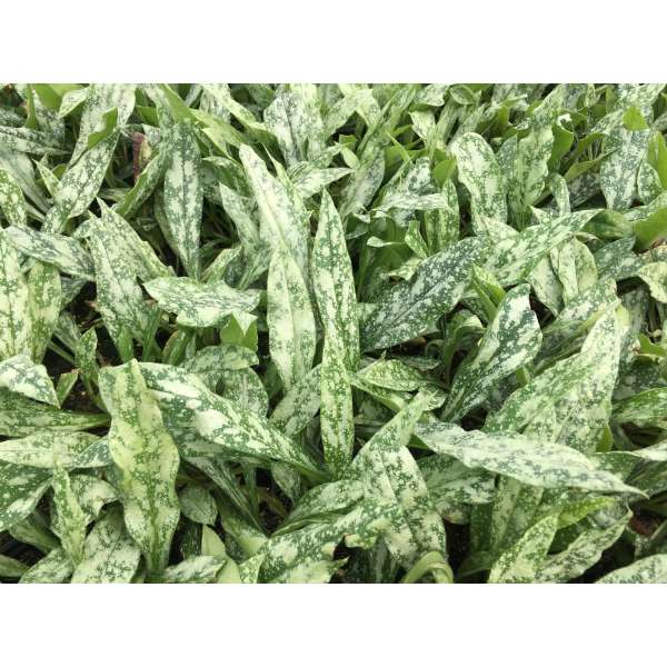 Pulmonaria longifolia subsp. cevennensis heeft fijner blad met grote onregelmatige zilvergrijze vlekken.