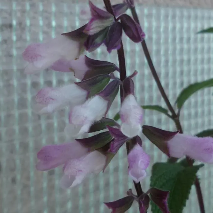 Salvia 'Waverly' is een fors opgaand groeiende, iets overhangende plant met sterk generfd donkergroen blad.
