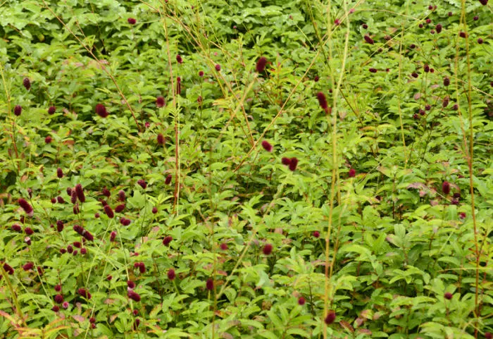 Sanguisorba 'Cangshan Cranberry' is een grote robuuste vaste plant met een verfijnd uiterlijk.
