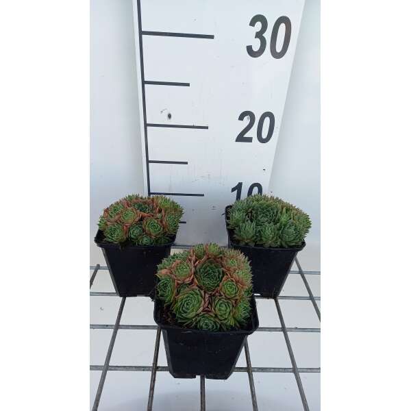 Sempervivum 'Triste' vormt rozetten met spatelvormige bladeren. Heeft de neiging om zachte grijsgroene tinten of warmere rode tot oranje kleuren te vertonen. Reageert op koude winters door donkerpaars te worden.
