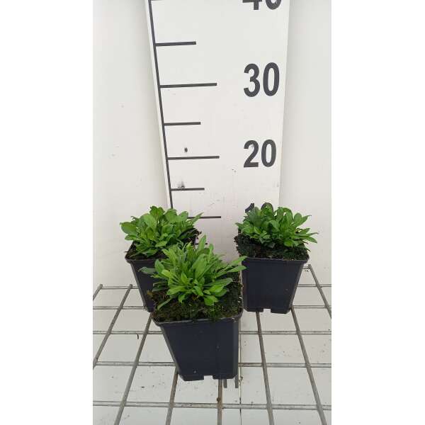 Heeft lancetvormige grijsgroene blaadjes en bloeit met magentaroze bloempjes.