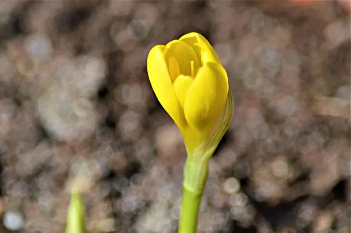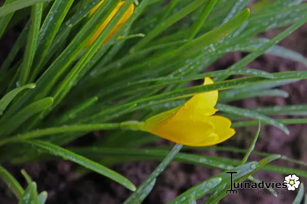 Sternbergia lutea vormt een pol van grasachtige donkergroene bladeren en bloeit met krokusachtige diepgele bloemen. Lijkt erg op een krokus maar heeft 6 meeldraden i.p.v. 3.