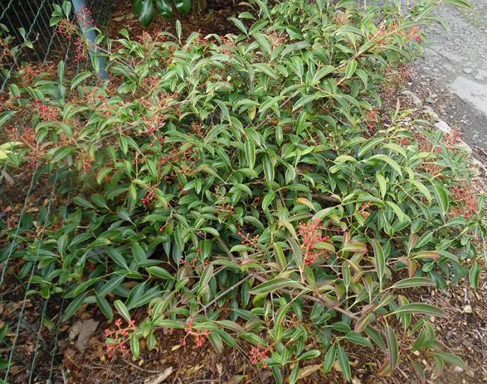 Bloeit met zoetgeurende, pluimvormige bloemen gevolgd door trosjes van rode besjes.