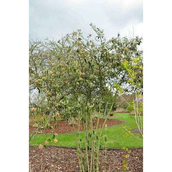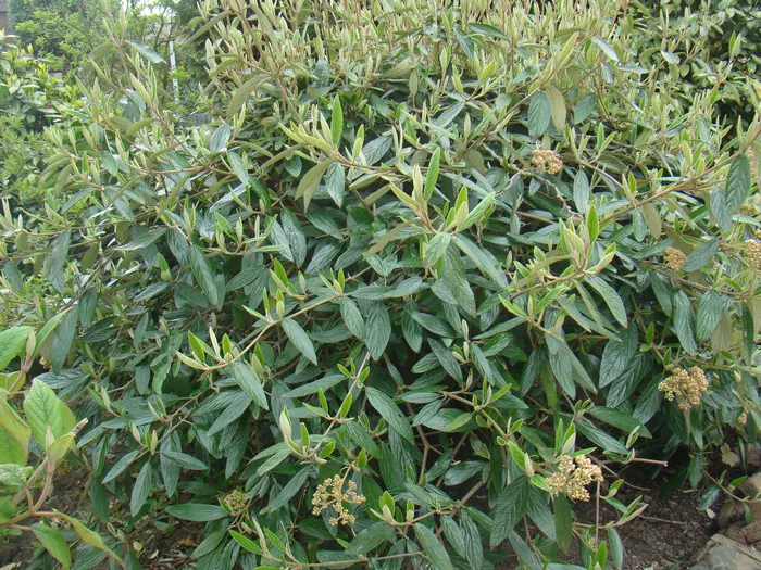 Viburnum 'Pragense' heeft een losse opgaande groeiwijze met langwerpige, glanzend groene bladeren met een zilvergrijze onderkant. De struik is wintergroen in zachte winters.