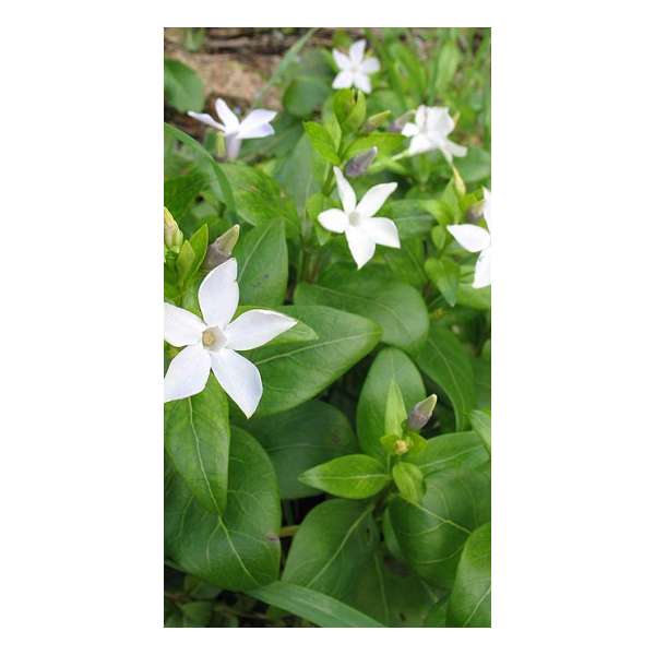 Het is een krachtige kruipende bodembedekker met heldergroene glanzende bladeren, perfect voor het snel bedekken van moeilijke gronden, onder struiken en tussen boomwortels.