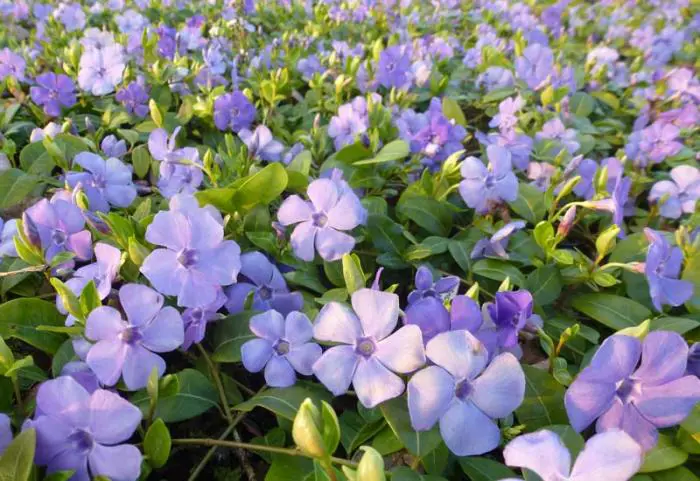 Vinca minor 'Flower Power' is een uitstekende tuinplant voor moeilijke plaatsen. Hij vormt een groenblijvende en dichtbegroeide bodembedekker die in het voorjaar met talrijke kleine blauwe sterrenbloemen bloeit.