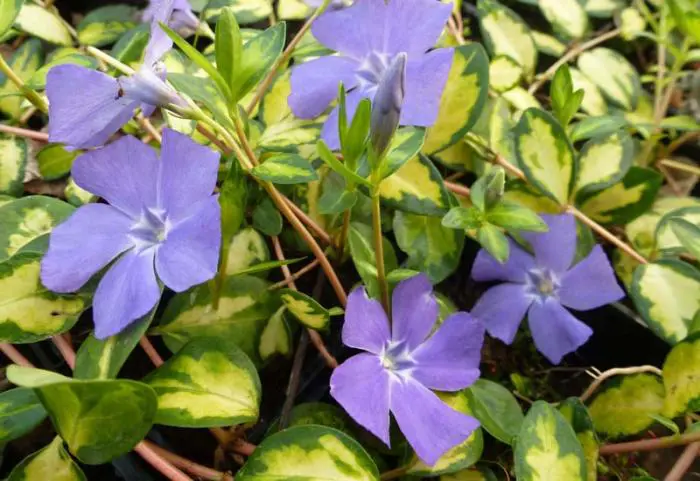 Vinca minor 'Illumination' is een uitstekende tuinplant voor moeilijke plaatsen. Hij vormt een groenblijvende en dichtbegroeide bodembedekker die in het voorjaar met talrijke kleine saffierblauwe sterrenbloemen bloeit.